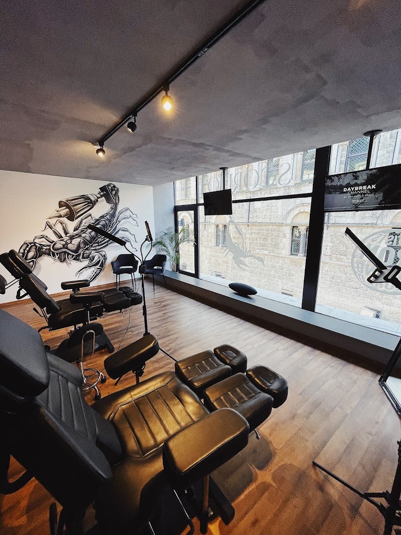 Scorpio Tattoo & Piercing is een high-end studio in Aalst die zich specialiseert in op maat gemaakte kunstwerken met een sterke focus op hygiëne en verfijning. De shop biedt een totaalpakket aan van tattoos, professionele piercings en earstyling in een luxueuze en artistieke atmosfeer. Met meerdere locaties in Vlaanderen staat Scorpio bekend om hun toegewijde benadering en het vertalen van persoonlijke verhalen naar unieke lichaamskunst.