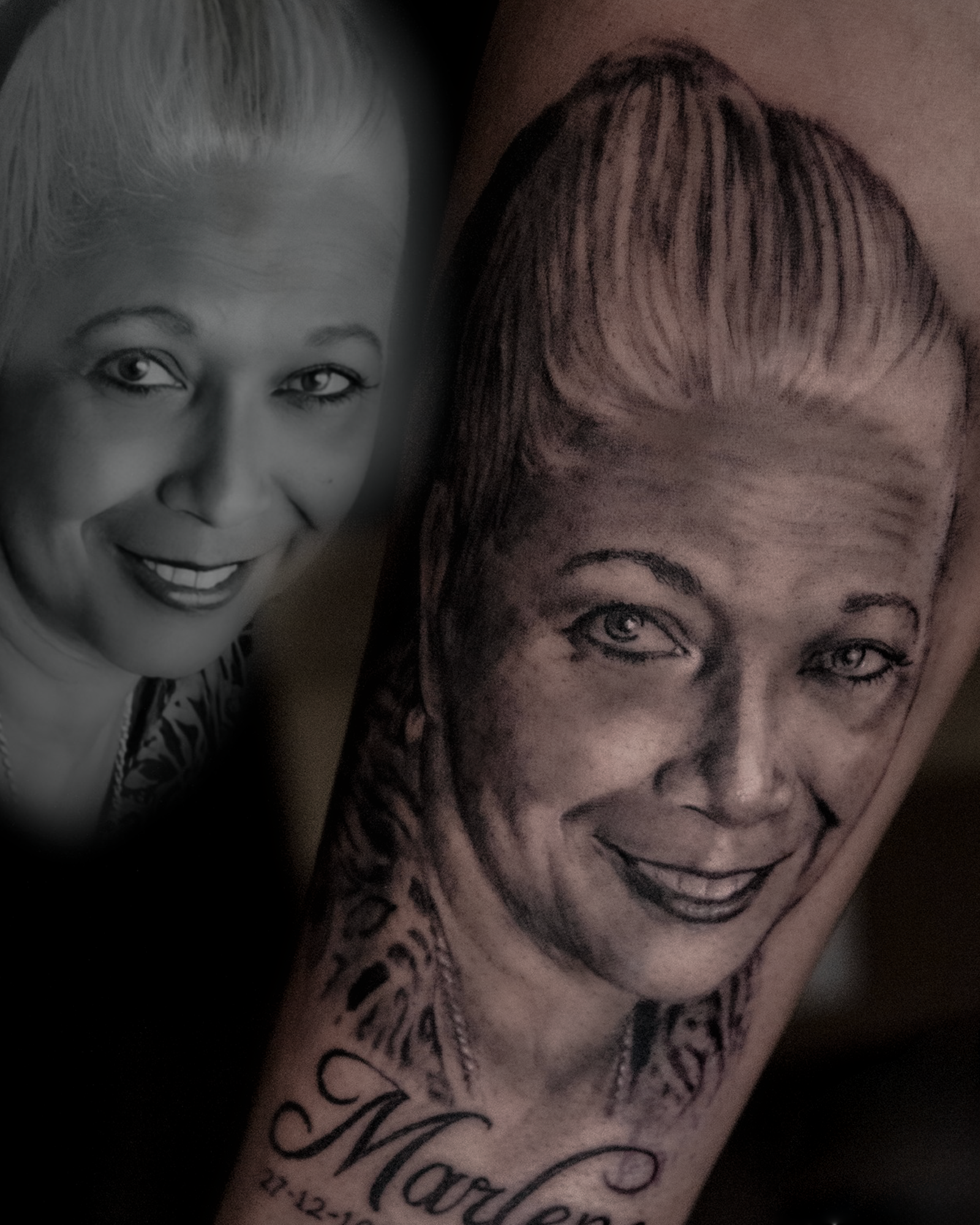 Realistisch portret van een vrouw met naam 'Marlene' en datum.