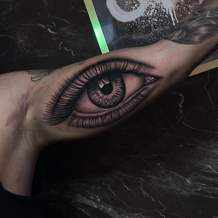 Realistisch oog op de binnenkant van de bovenarm.