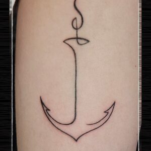 Minimalistisch anker in één doorlopende lijn op de bovenarm.