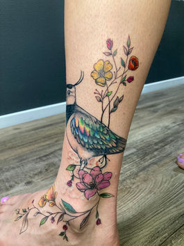 Kleurrijke kievit met bloemen op enkel en voet.