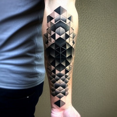 Geometrische 3D kubus tattoo op onderarm met dotwork.