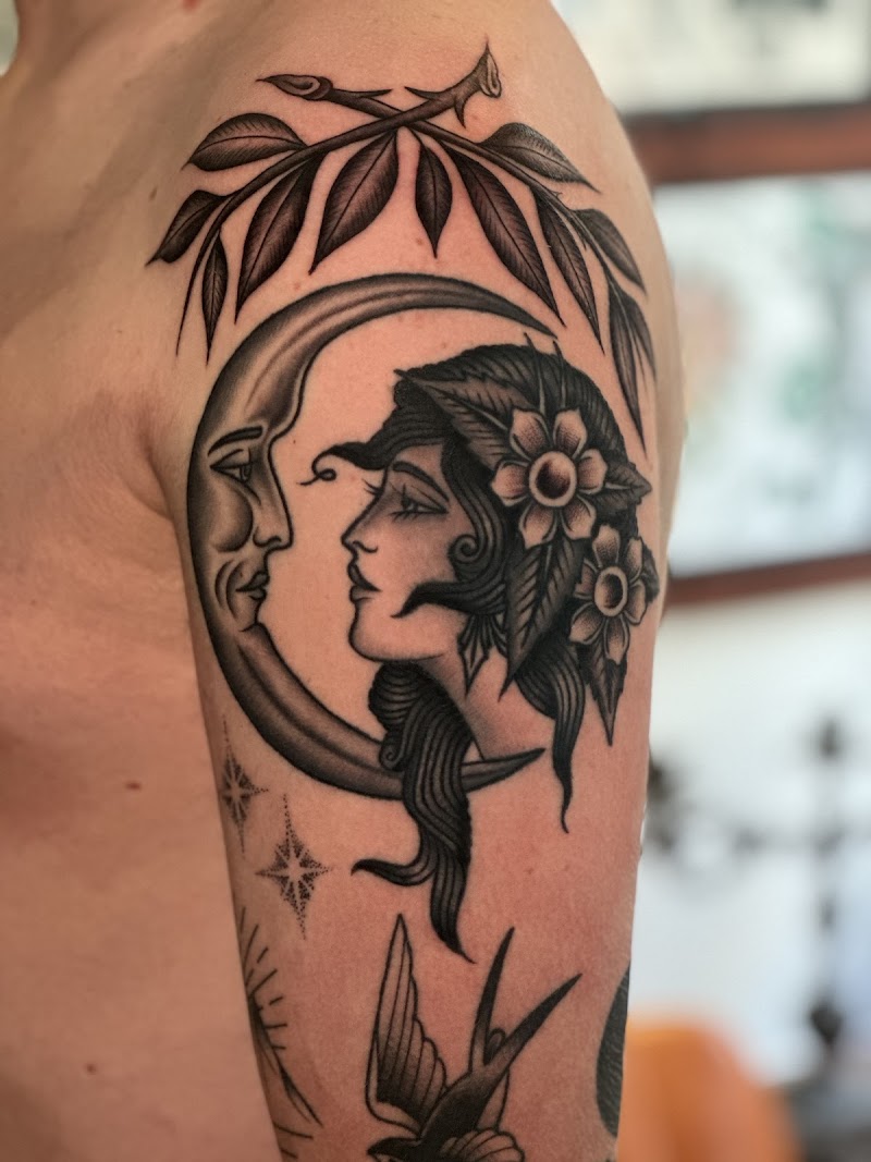 Hoogtij Tattoo is een open en creatieve tattoo studio gevestigd in het hart van Middelburg die staat voor vakmanschap en persoonlijk contact. De shop is gespecialiseerd in custom werk variërend van American Traditional tot verfijnde handpoke en dotwork, waarbij een unieke ervaring van idee tot resultaat centraal staat.