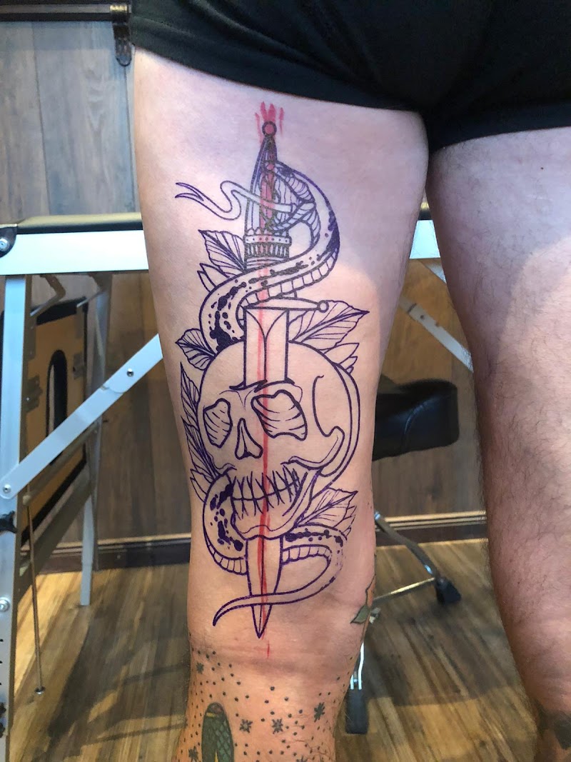 Sharkhunter Tattoos is een custom tattoo shop gevestigd in het centrum van Ratingen die sinds 2015 hoogwaardig tatoeëerwerk combineert met een unieke, huiselijke sfeer. De studio onderscheidt zich door een grote liefde voor detail, zowel in de artistieke ontwerpen als in het bijzondere interieur van de zaak. Het team biedt een breed scala aan stijlen aan, variërend van Oldschool en Traditional tot Black and Grey Realisme en Fineline.