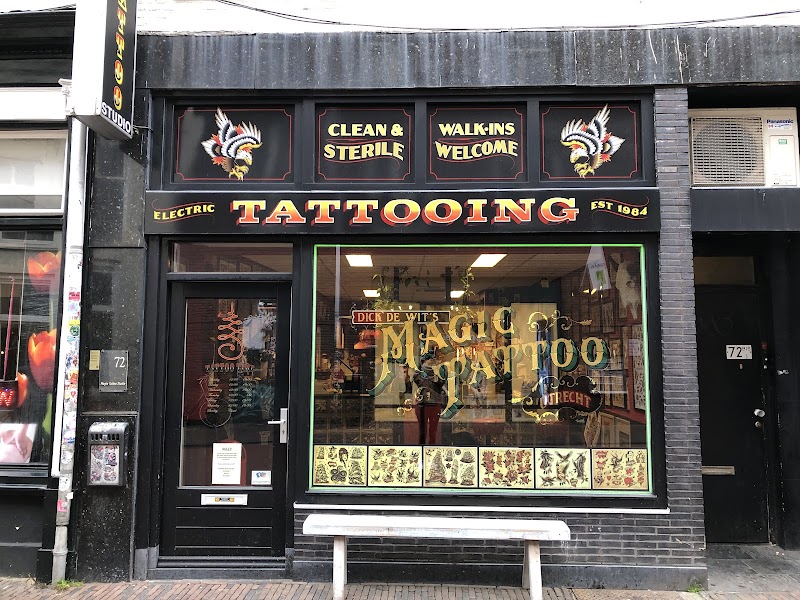 Magic Tattoo Studio is een sinds 1984 gevestigde shop in hartje Utrecht, opgericht door Dick de Wit. De studio staat bekend om zijn professionaliteit en brede expertise, variërend van traditionele Old-School en Japanse tattoos tot verfijnd fineline werk.