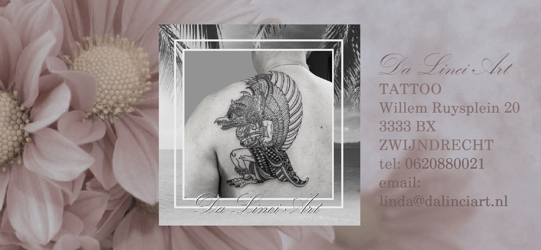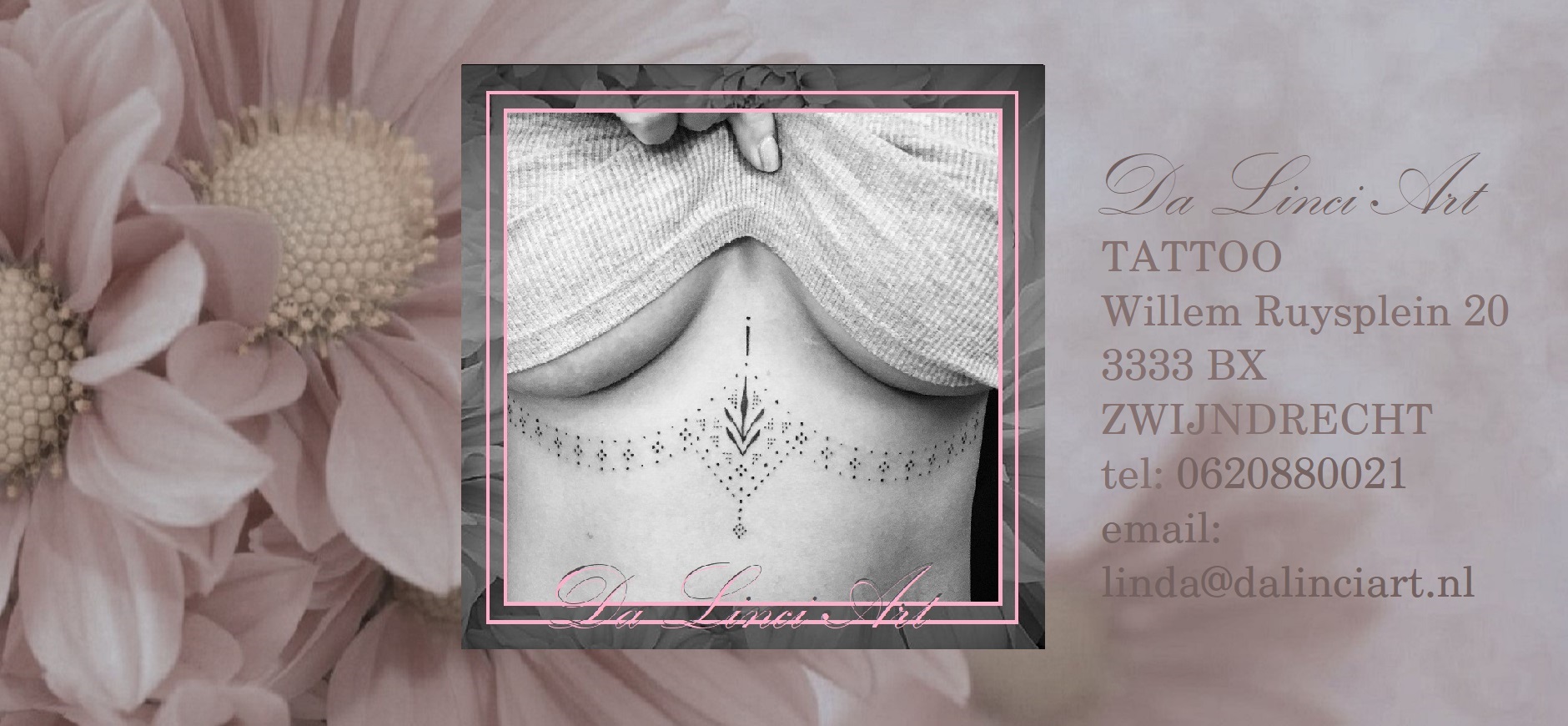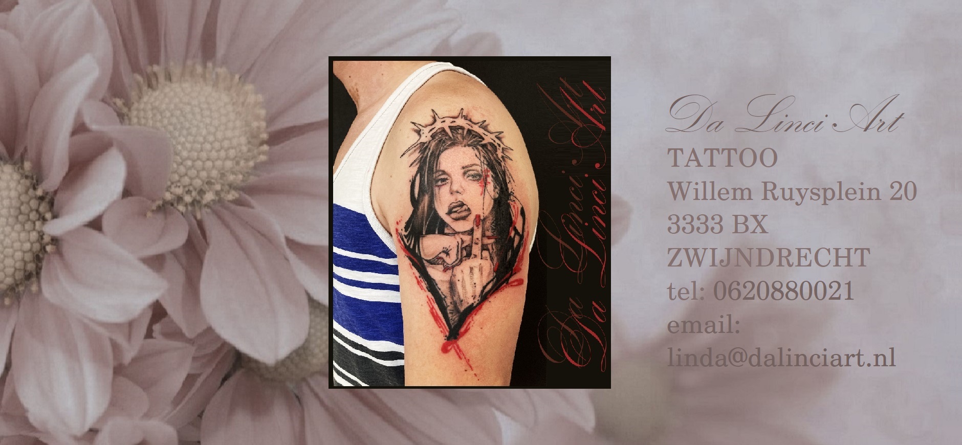 Da Linci Art Tattoo is een GGD-goedgekeurde all-round tattoo shop in Zwijndrecht onder leiding van Linda Roos. De studio onderscheidt zich door een breed aanbod van stijlen, variërend van fine line en black & grey tot bodypaint en muurschilderingen, waarbij hygiëne en persoonlijke aandacht centraal staan. De shop richt zich primair op klanten uit de regio Zwijndrecht, Hendrik Ido Ambacht, Dordrecht en Heerjansdam.